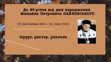 Шановні колеги, друзі та всі, хто цікавиться історією української медицини! Читати далі... about Михайло Павловський. Віртуальна виставка до 95-річчя від дня народження